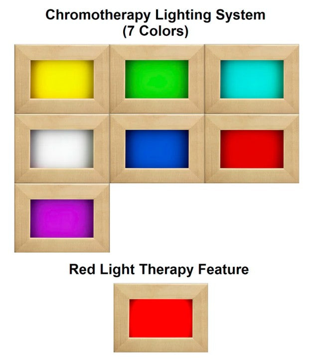 - Chromotherapy color lighting with red light feature, plus roof vent for comfort and airflow