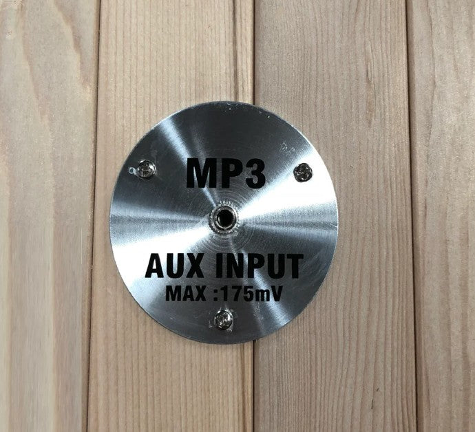 For entertainment and relaxation, the Aspen includes Bluetooth and MP3 auxiliary connection with built-in speakers, so you can play music, guided sessions, or ambient sound directly from your phone or media device—no additional radio or separate sound system required. The controls and speakers are designed to be easy to use and unobtrusive, keeping the focus on the clean hemlock interior.